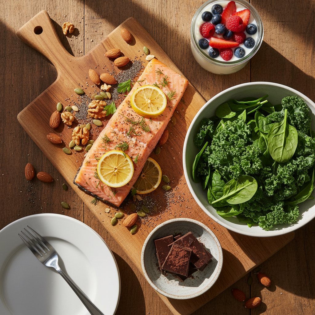 Eating well plays a significant role in mood regulation. Incorporate foods rich in omega-3 fatty acids like salmon, leafy greens such as spinach and kale, nuts, seeds, and moderate amounts of dark chocolate to nourish your brain. Fermented foods like yogurt and kimchi support gut health, critical since gut and brain health are closely connected. Choosing these natural mood-boosting foods over junk food can uplift your spirits sustainably.