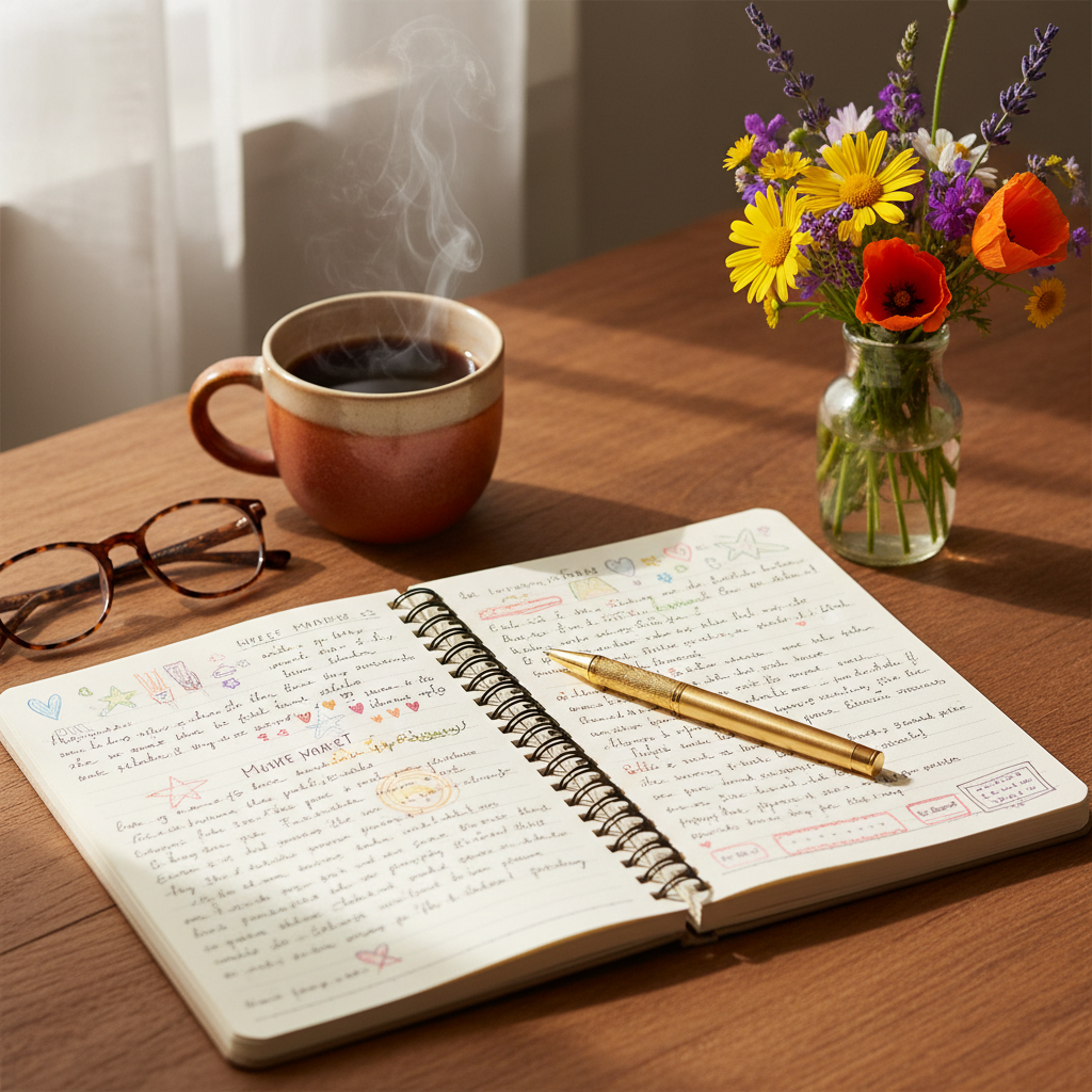 Choose a cozy nook and a specific time—morning coffee, bedtime, or any quiet moment. Making journaling part of your daily ritual greatly improves success.