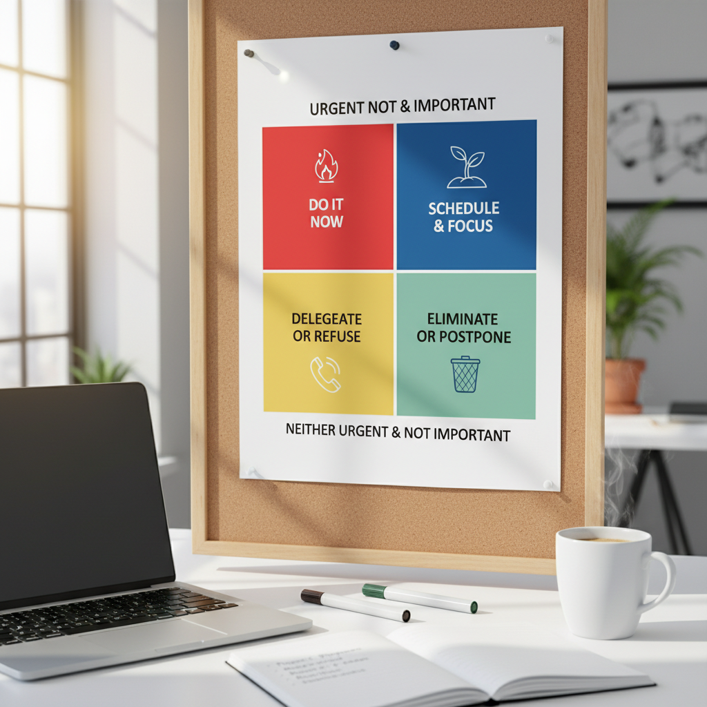 - Q4: Neither urgent nor important — minimize or remove these distractions.